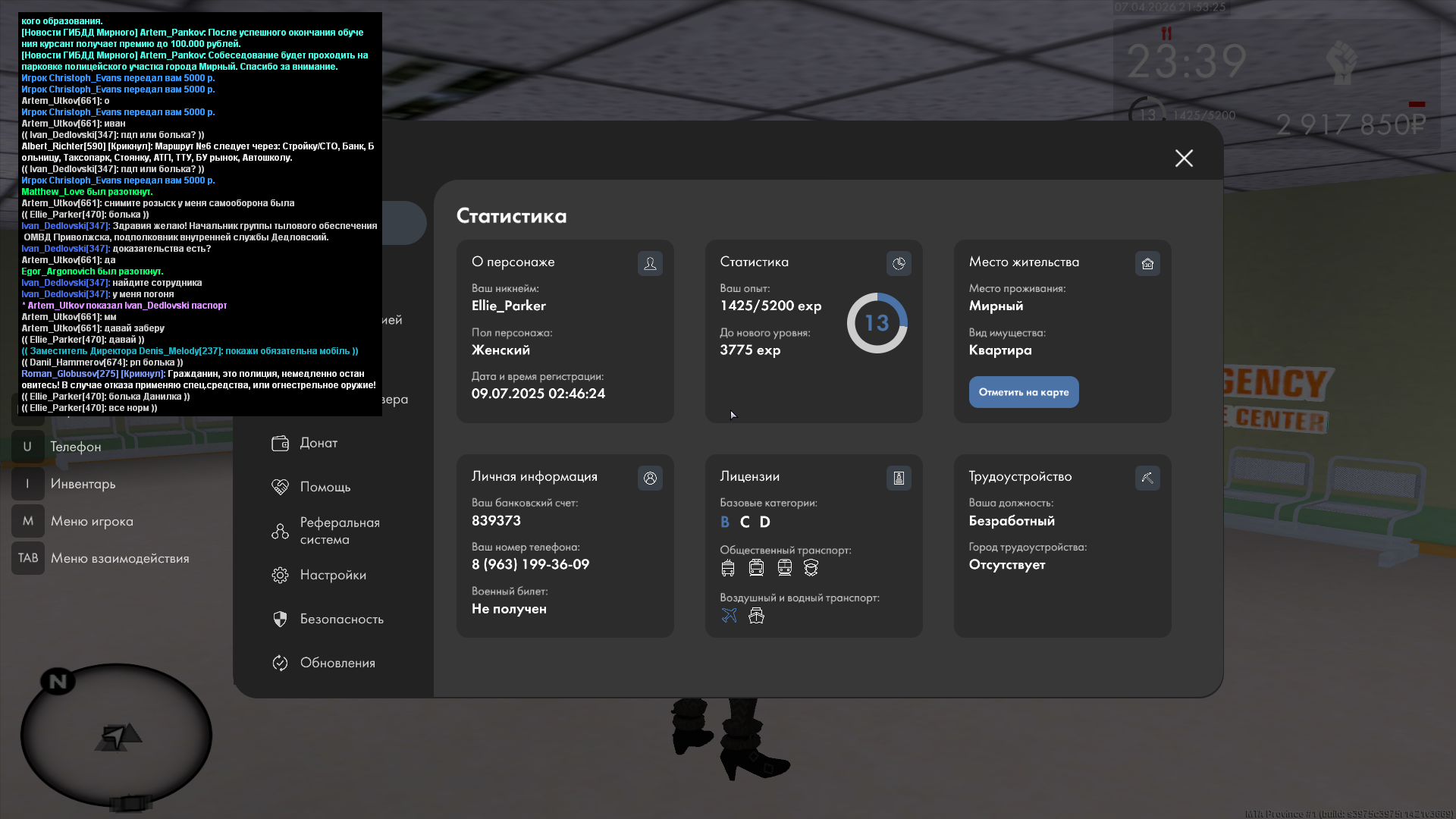 Вход в аккаунт