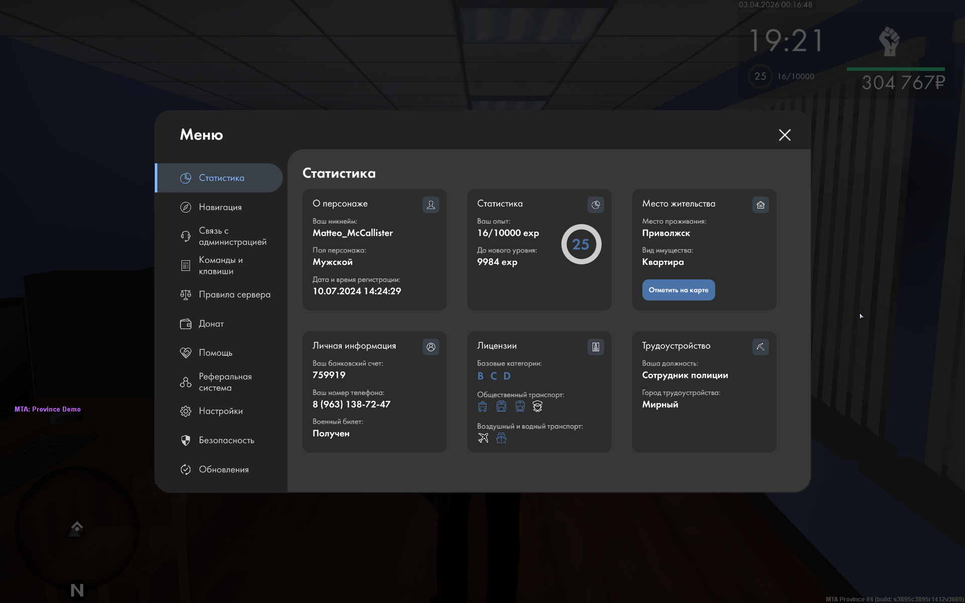 Вход в аккаунт