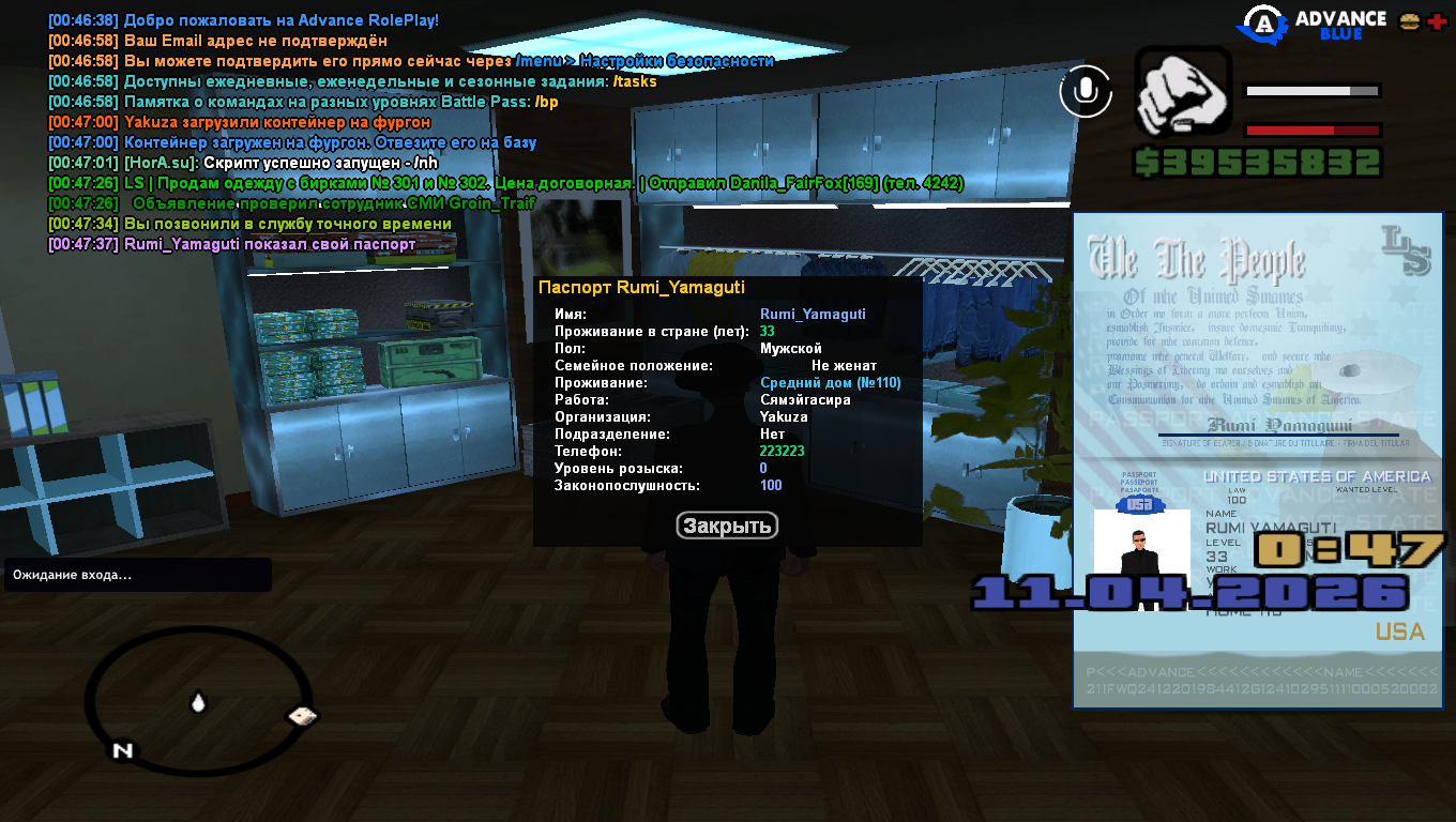 Вход в аккаунт