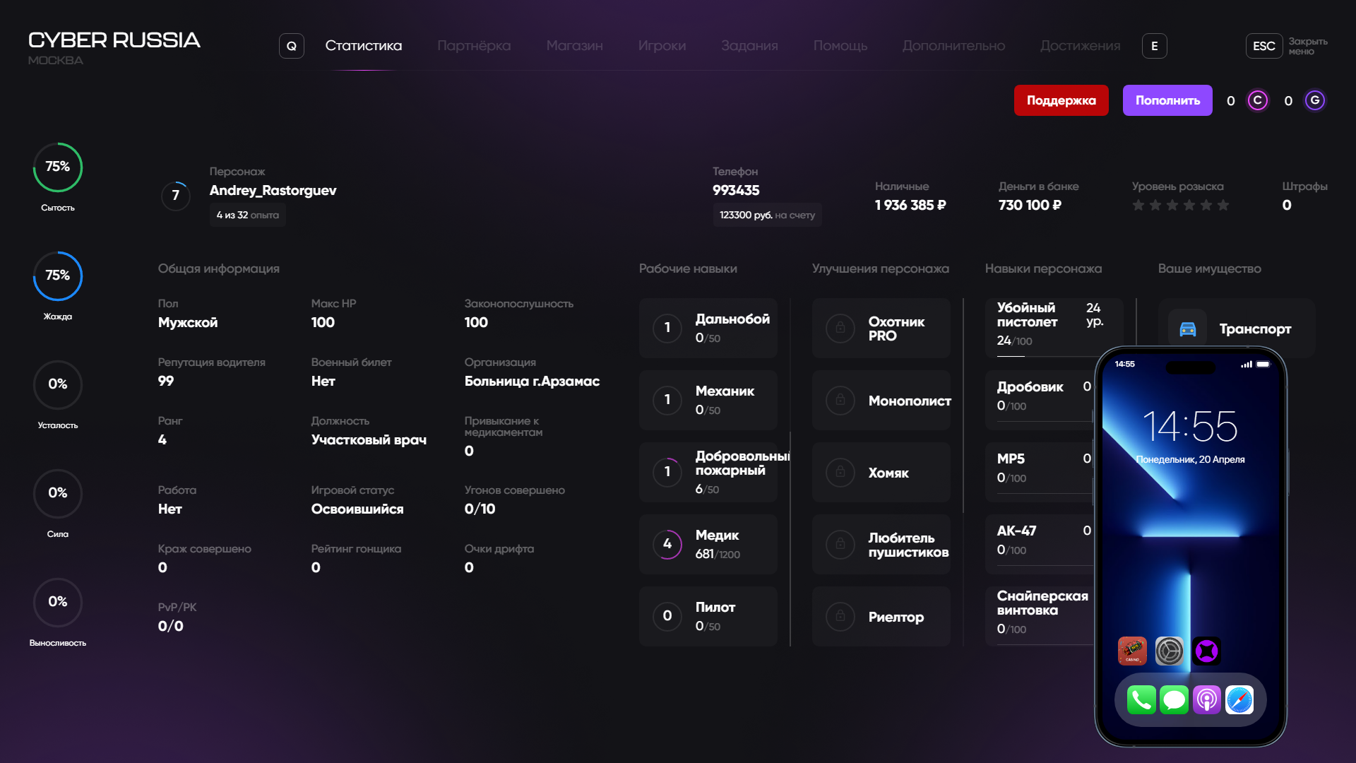 Вход в аккаунт