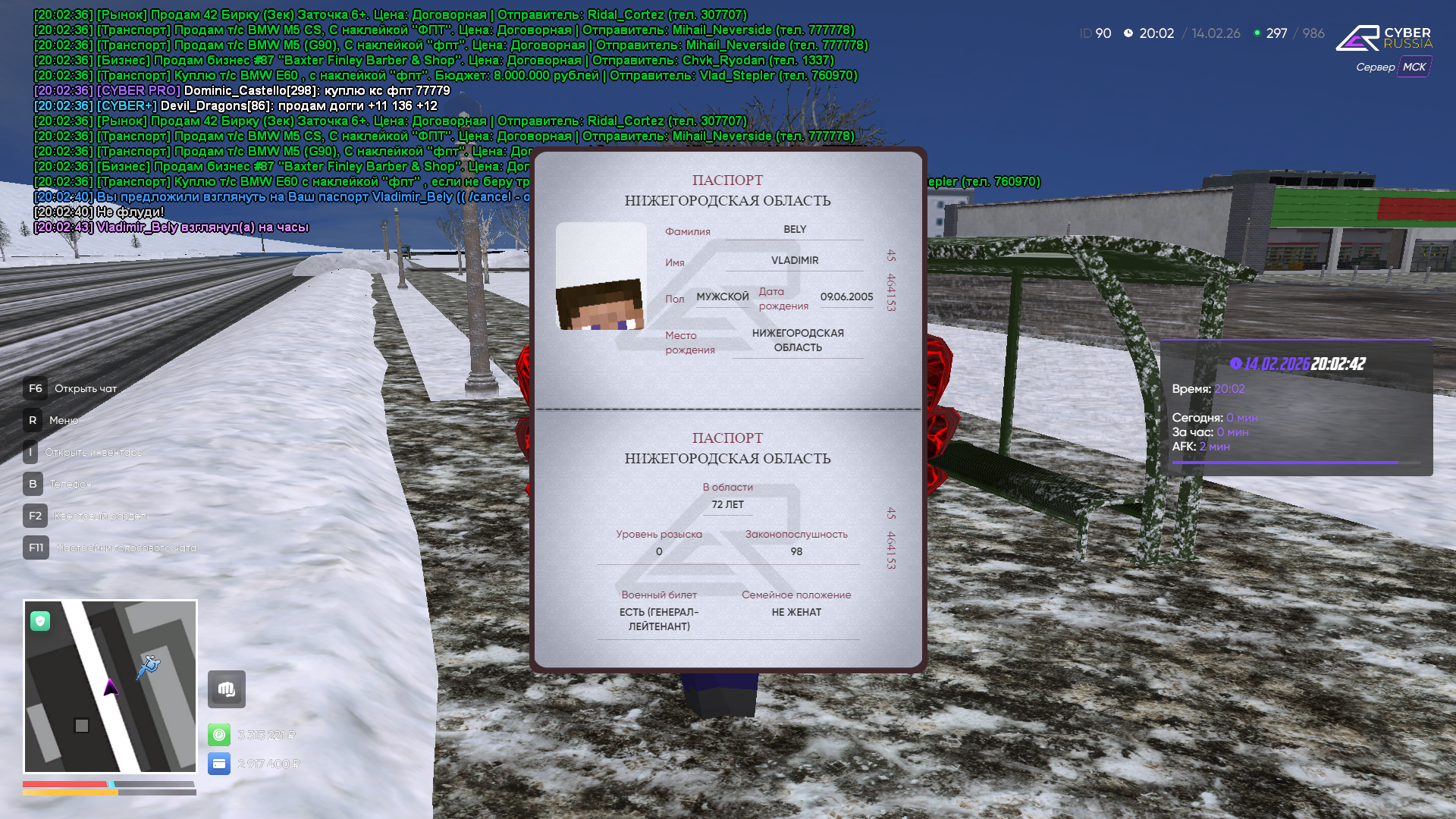 Вход в аккаунт