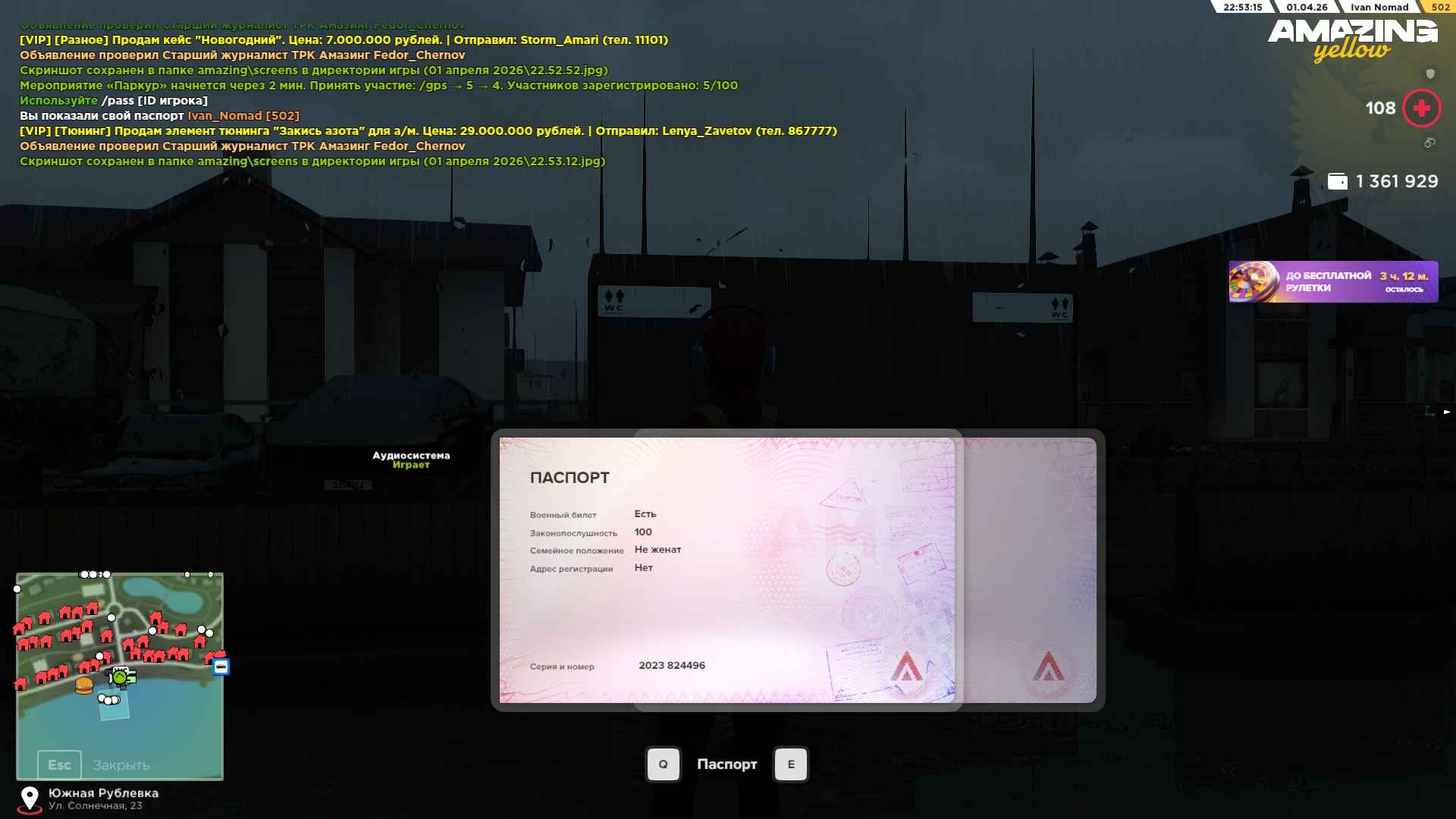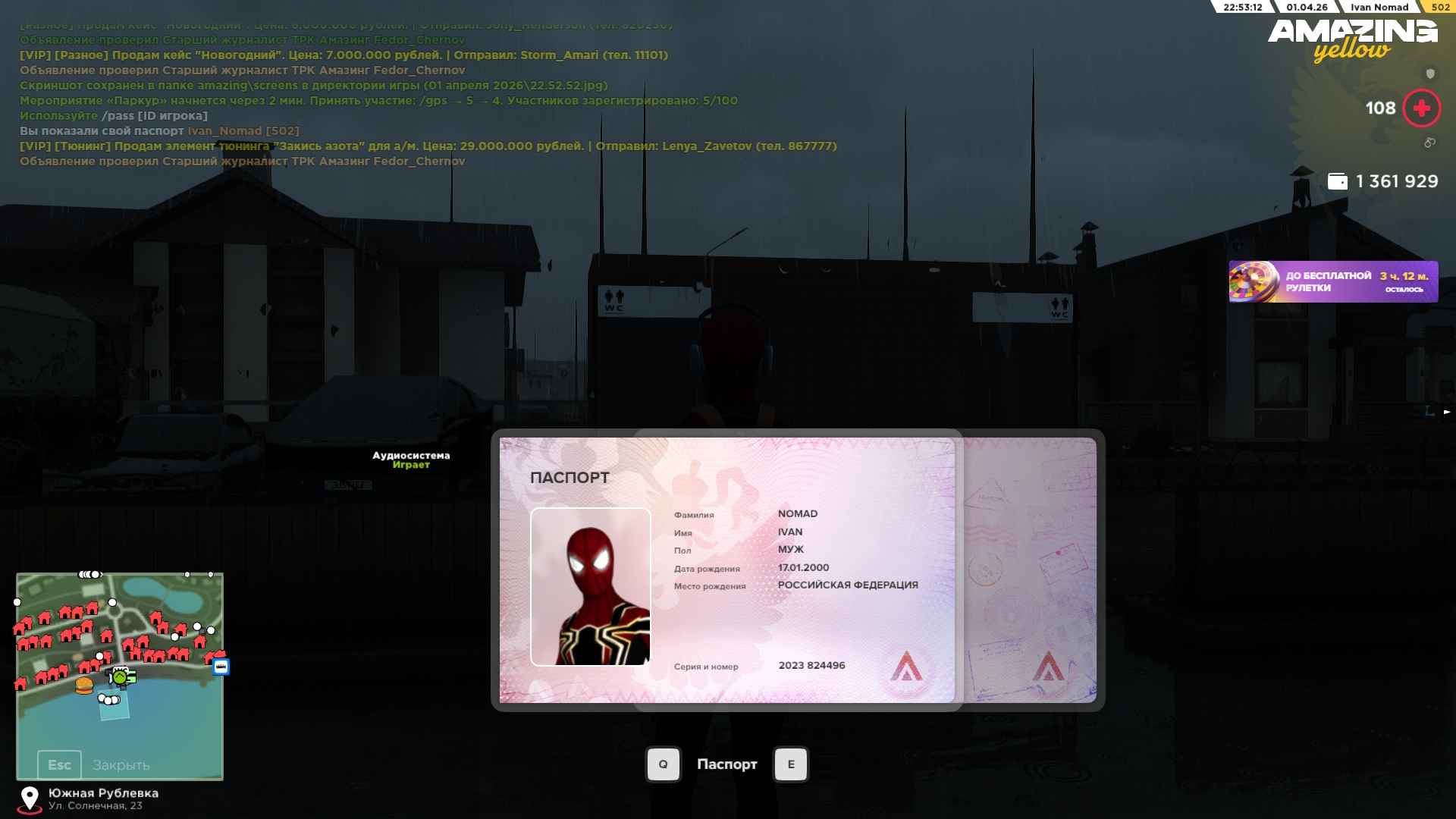 Вход в аккаунт