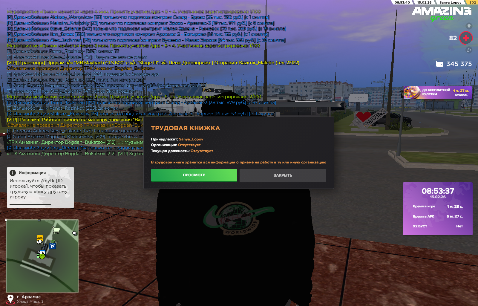 Вход в аккаунт