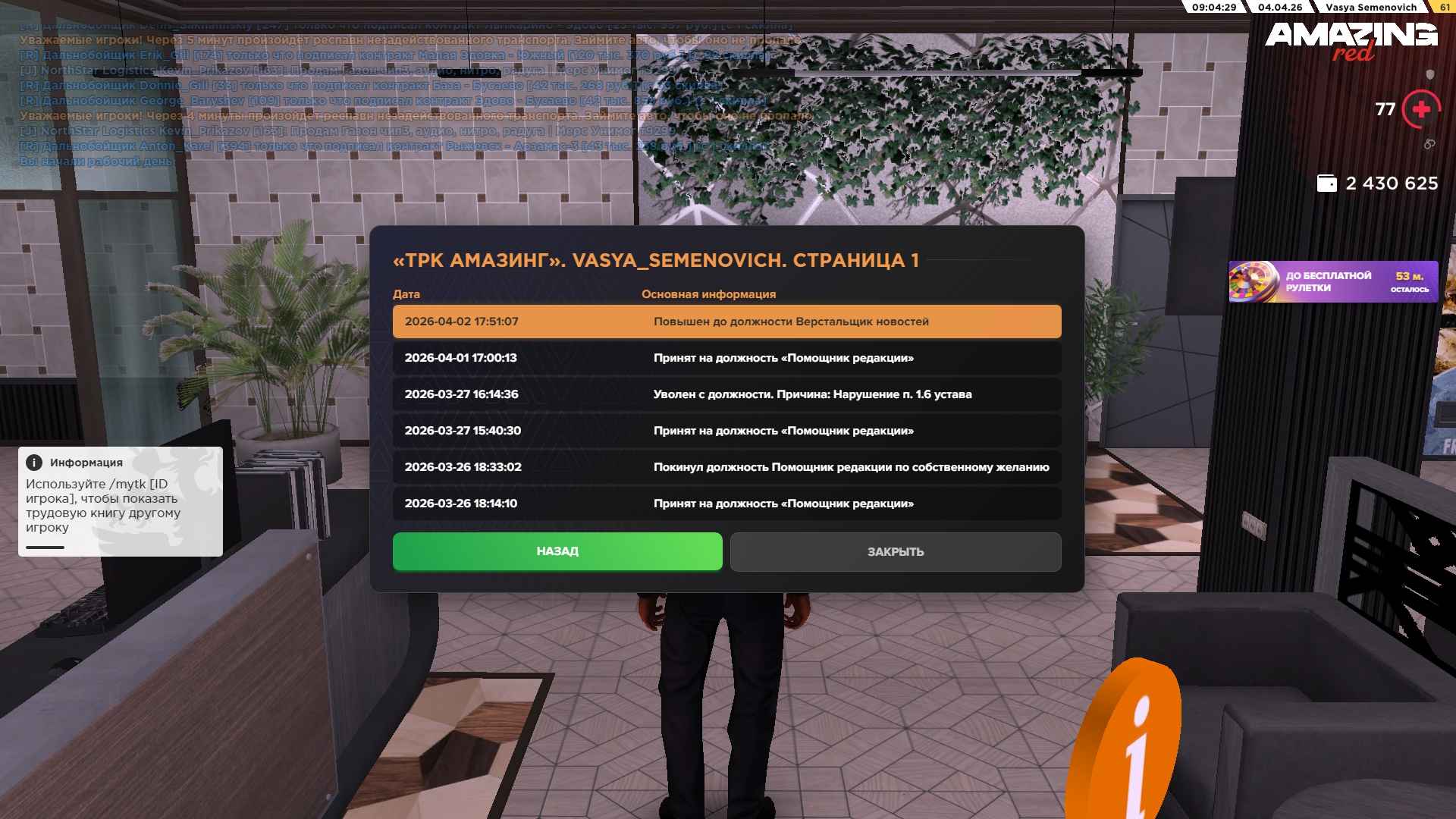 Вход в аккаунт