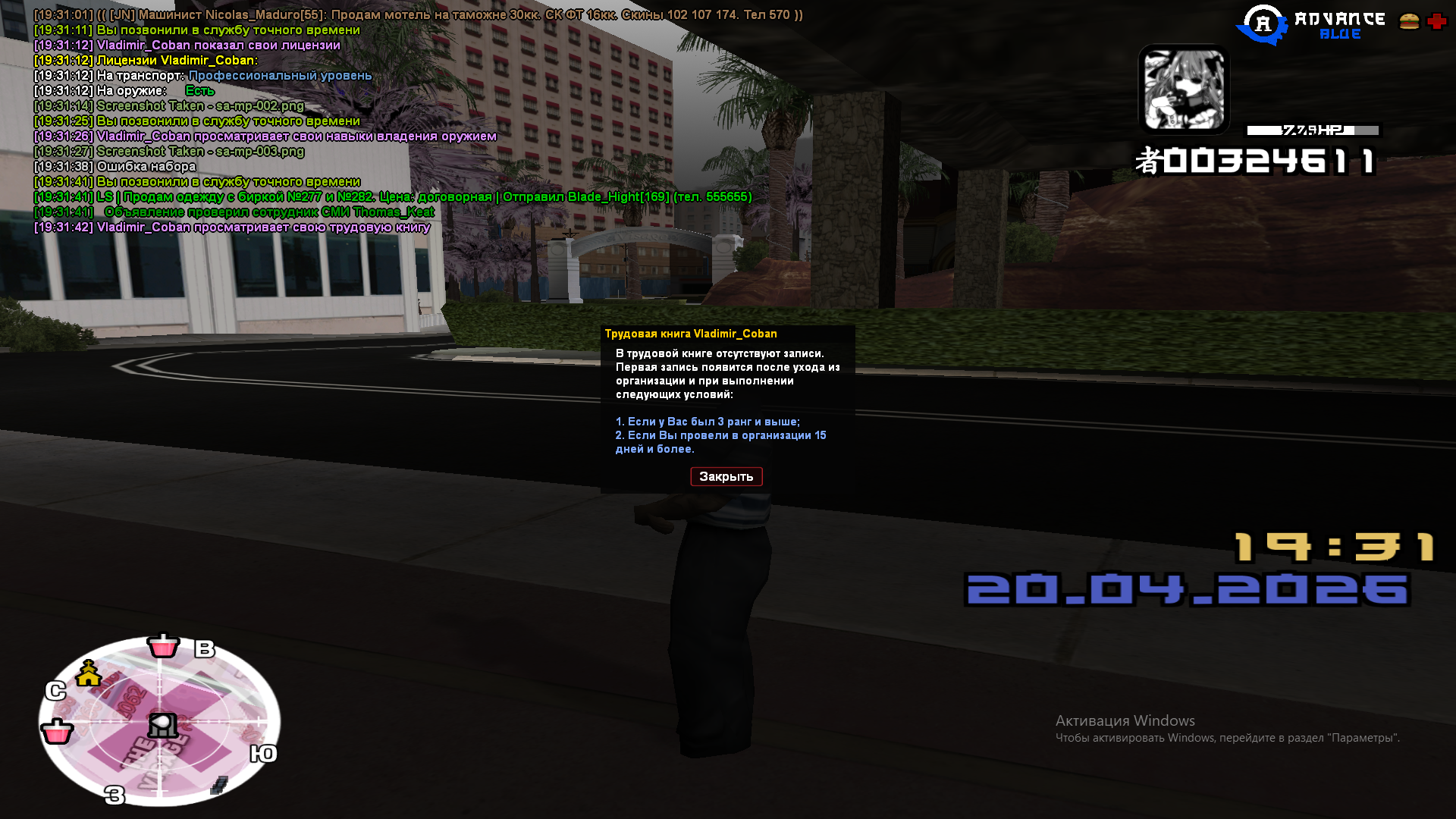 Вход в аккаунт