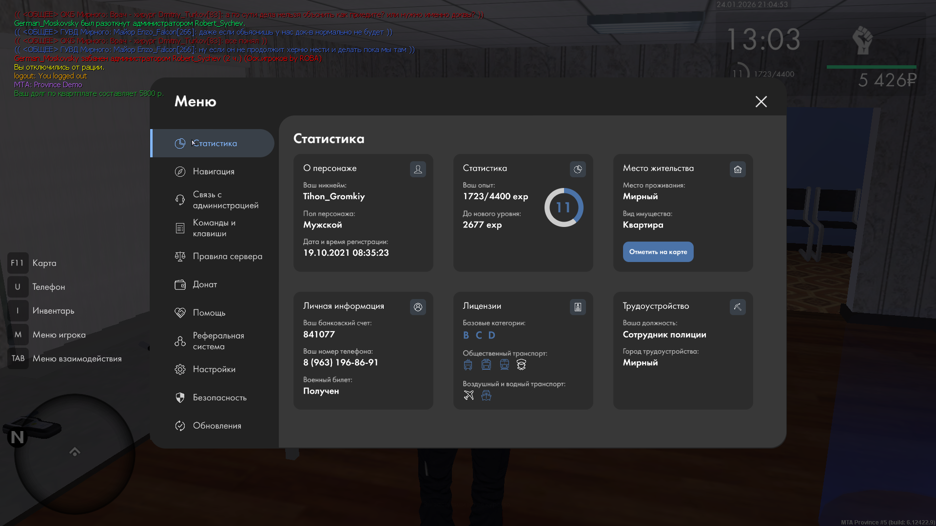 Вход в аккаунт