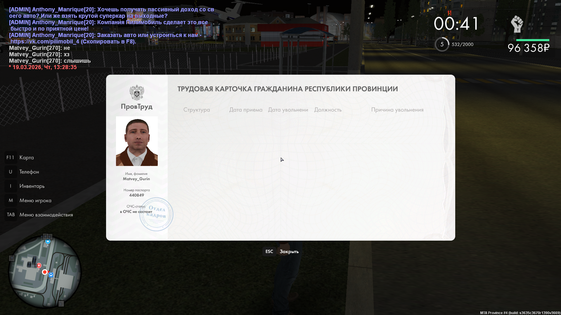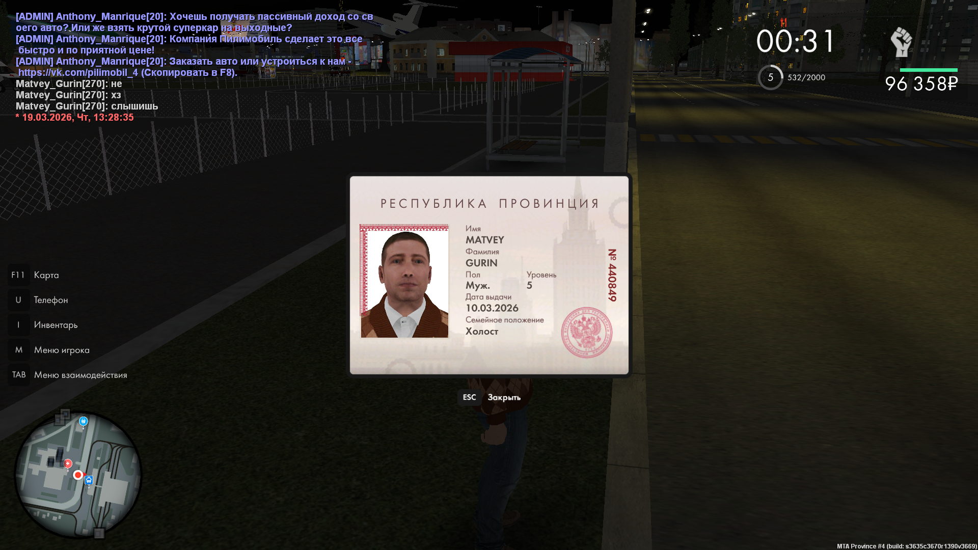 Вход в аккаунт