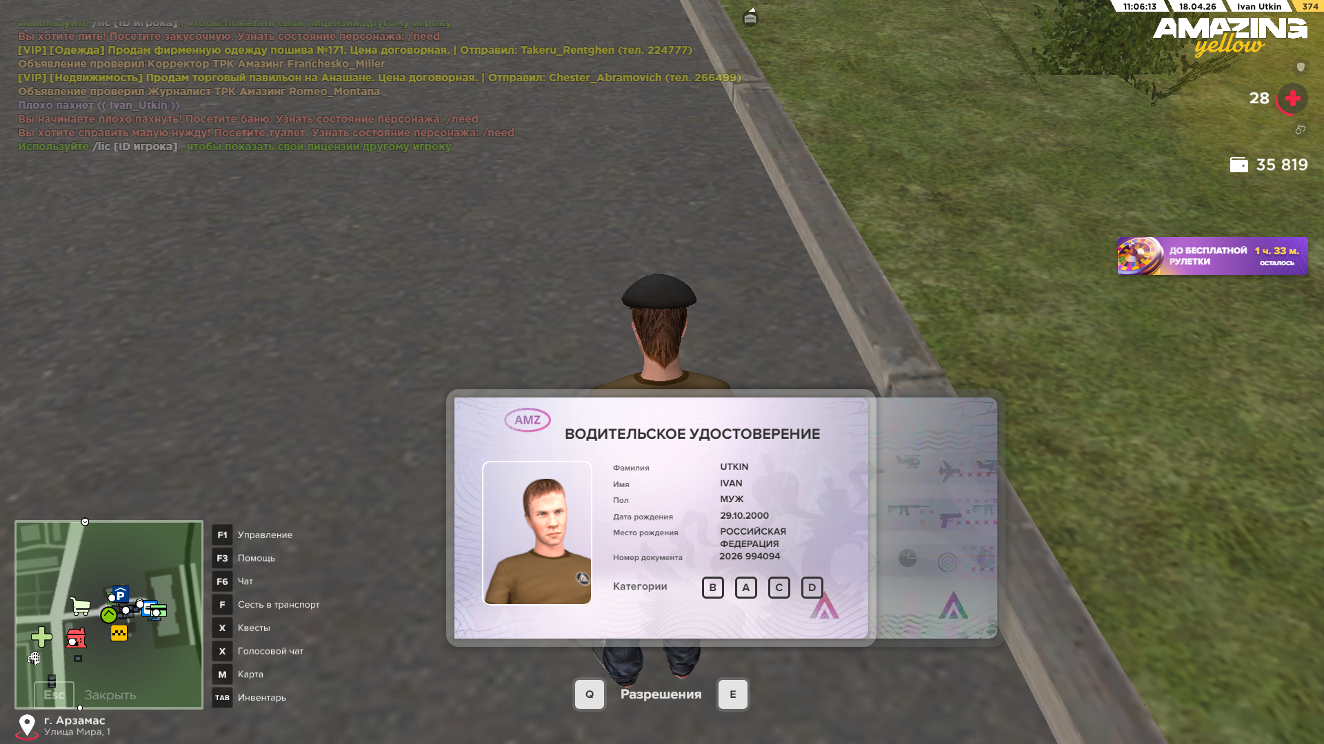 Вход в аккаунт