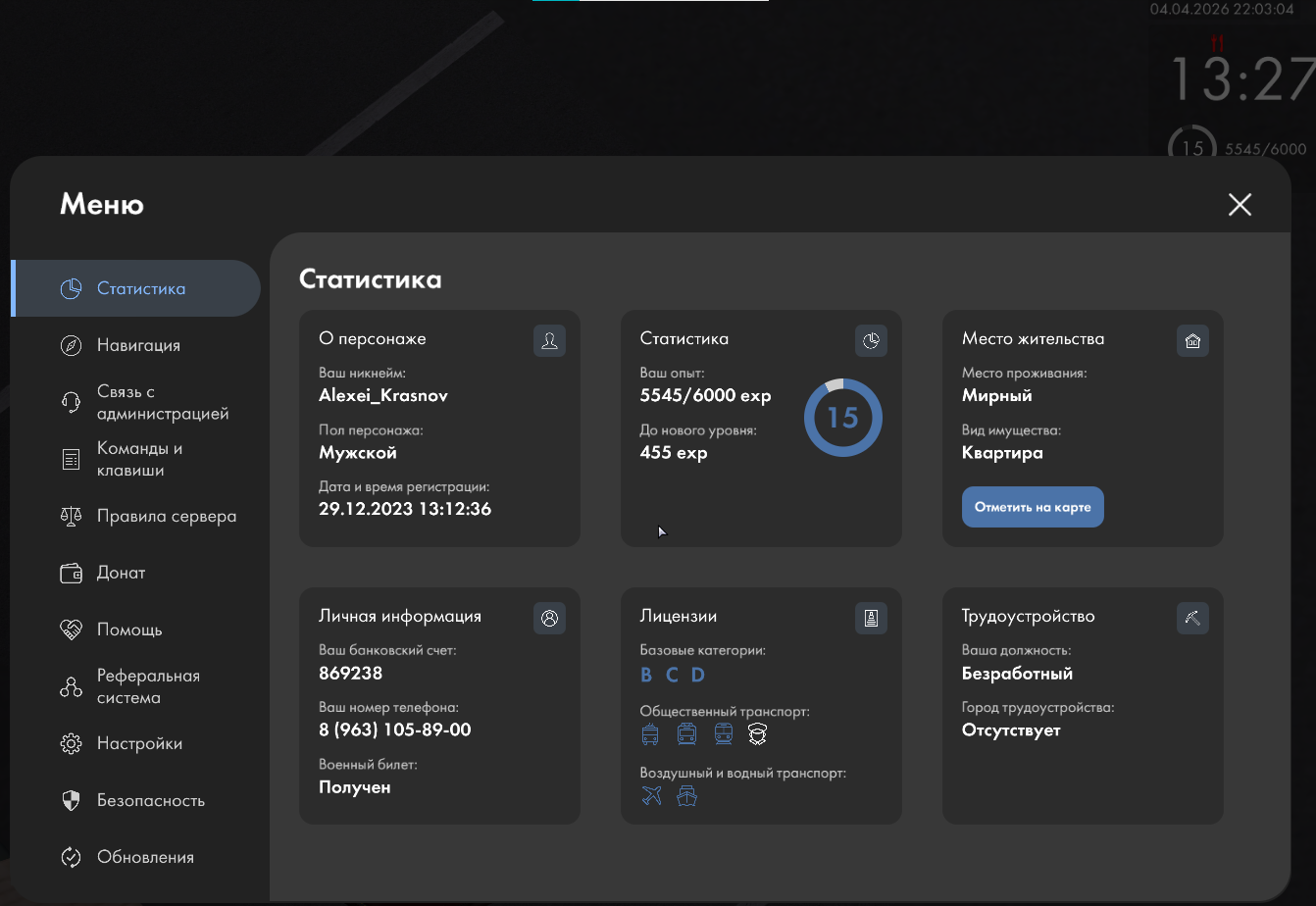 Вход в аккаунт