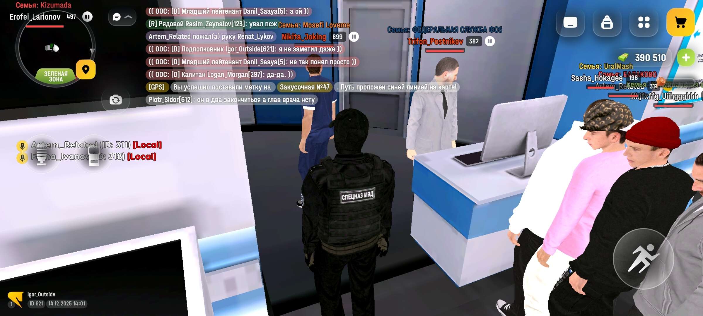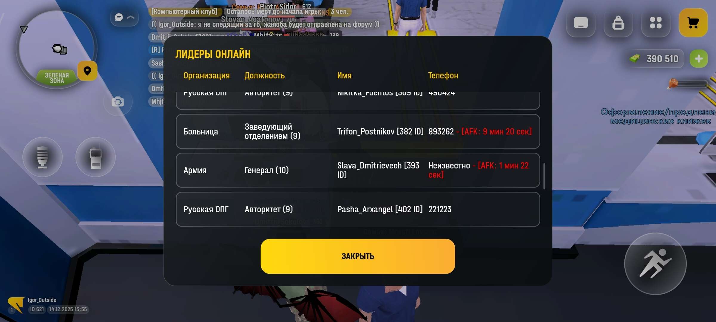 Четкая фиксация имён сотрудников и то что они находятся в АФК.