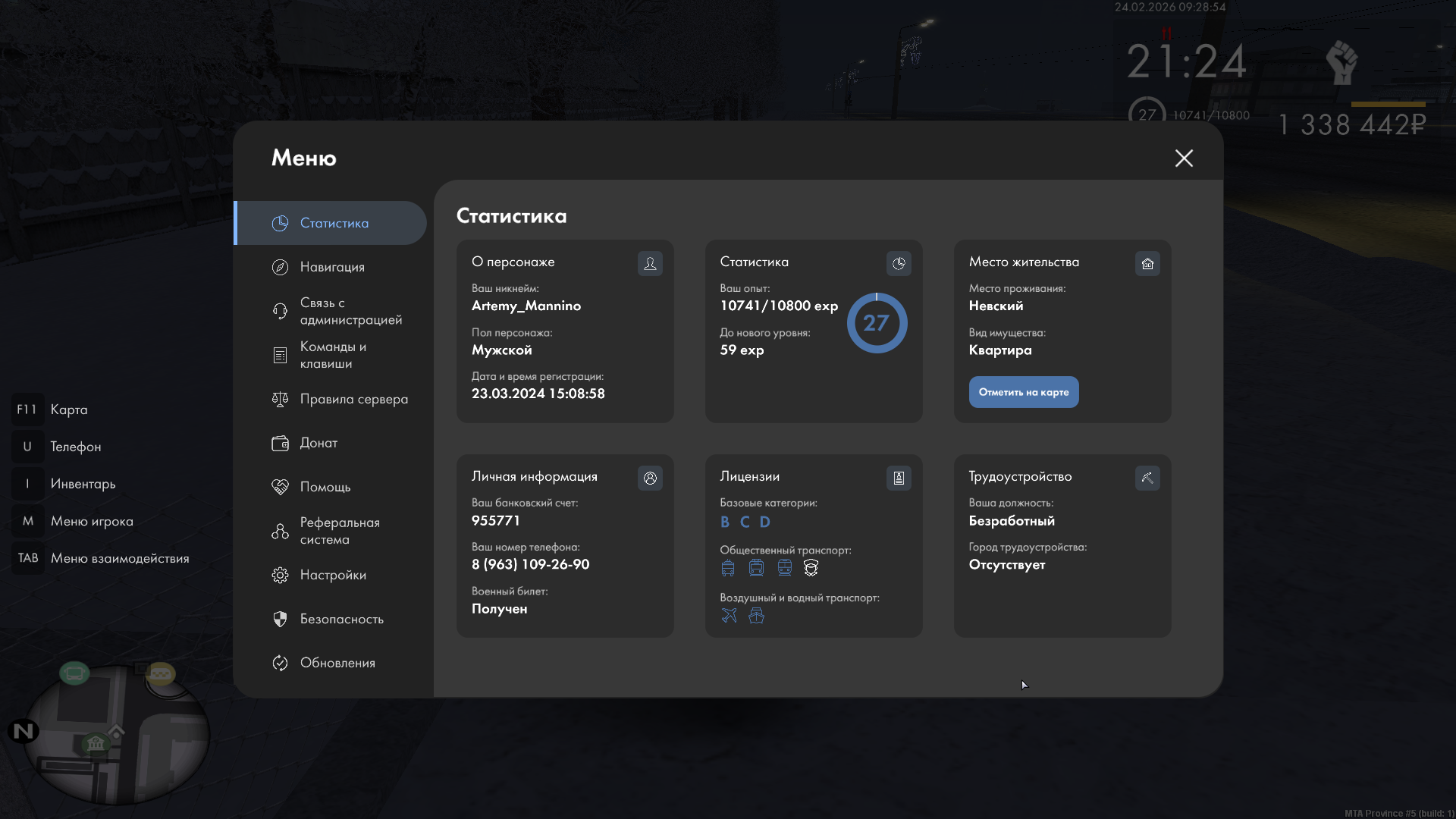 Вход в аккаунт