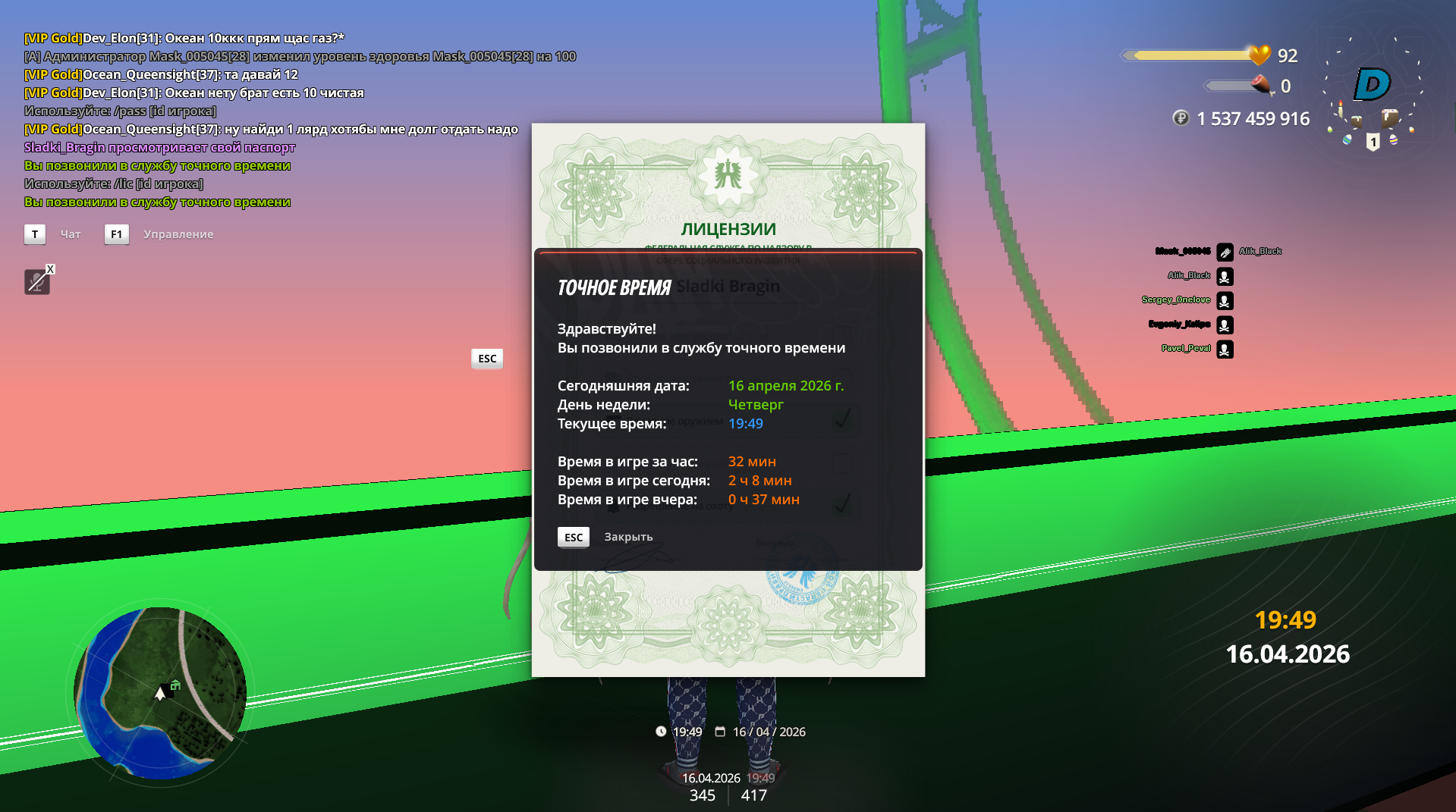 Вход в аккаунт
