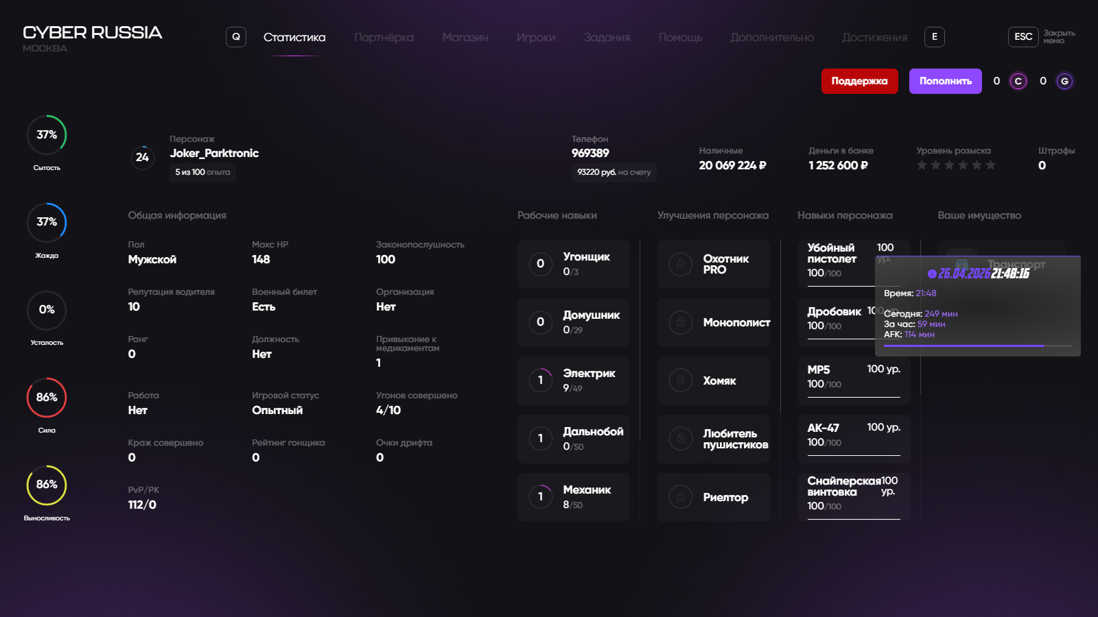Вход в аккаунт