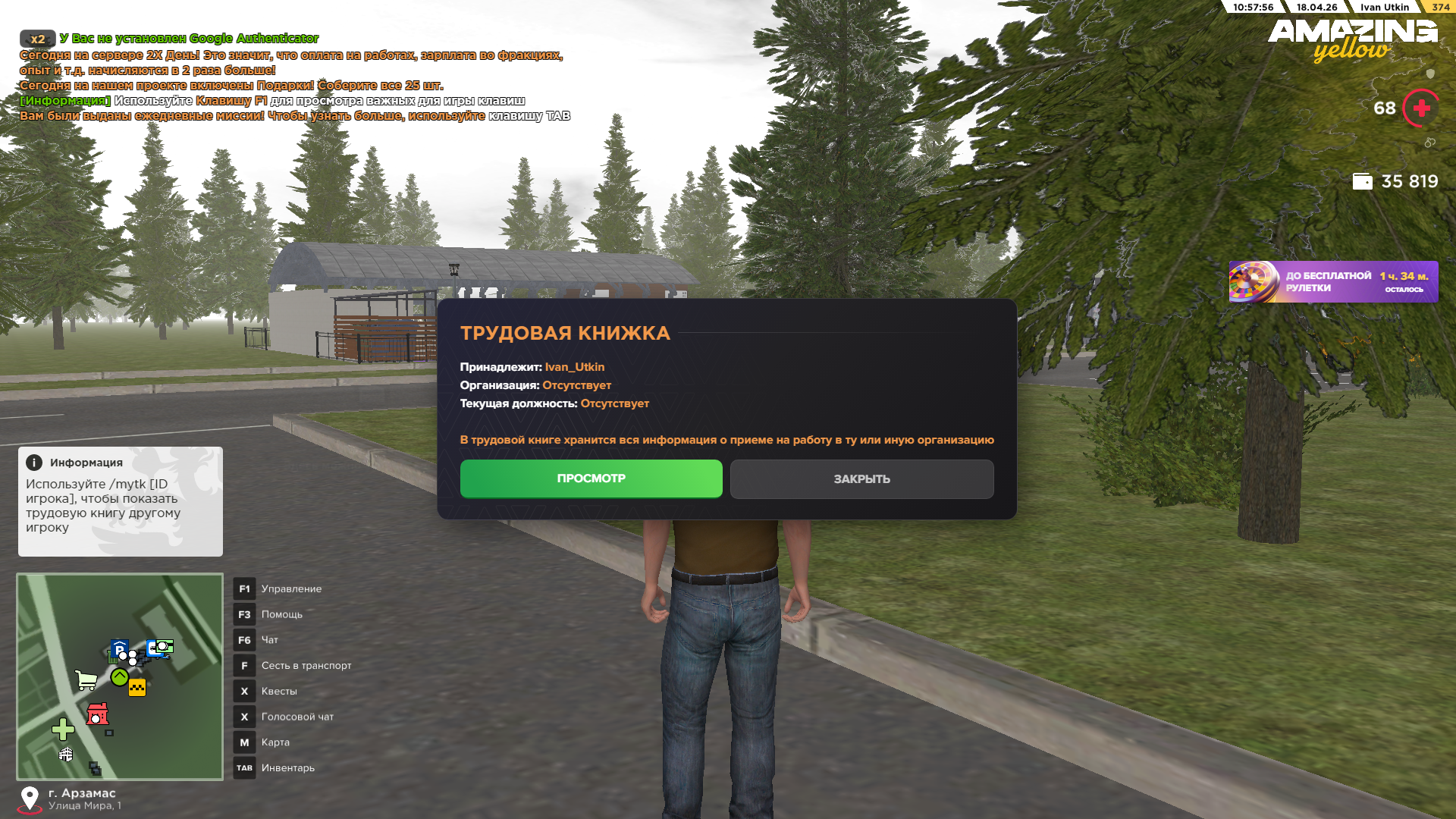 Вход в аккаунт