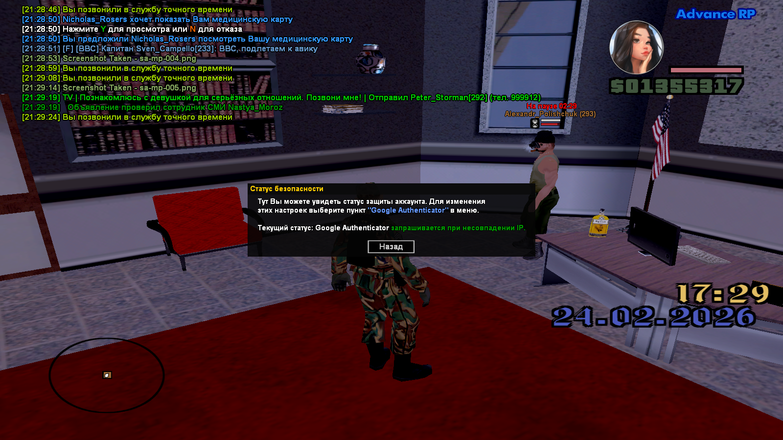 Вход в аккаунт