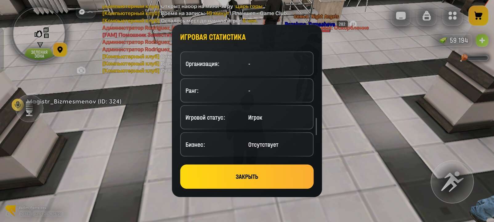 Вход в аккаунт