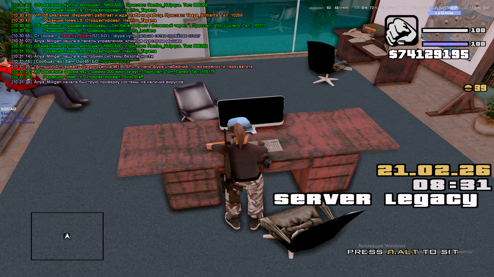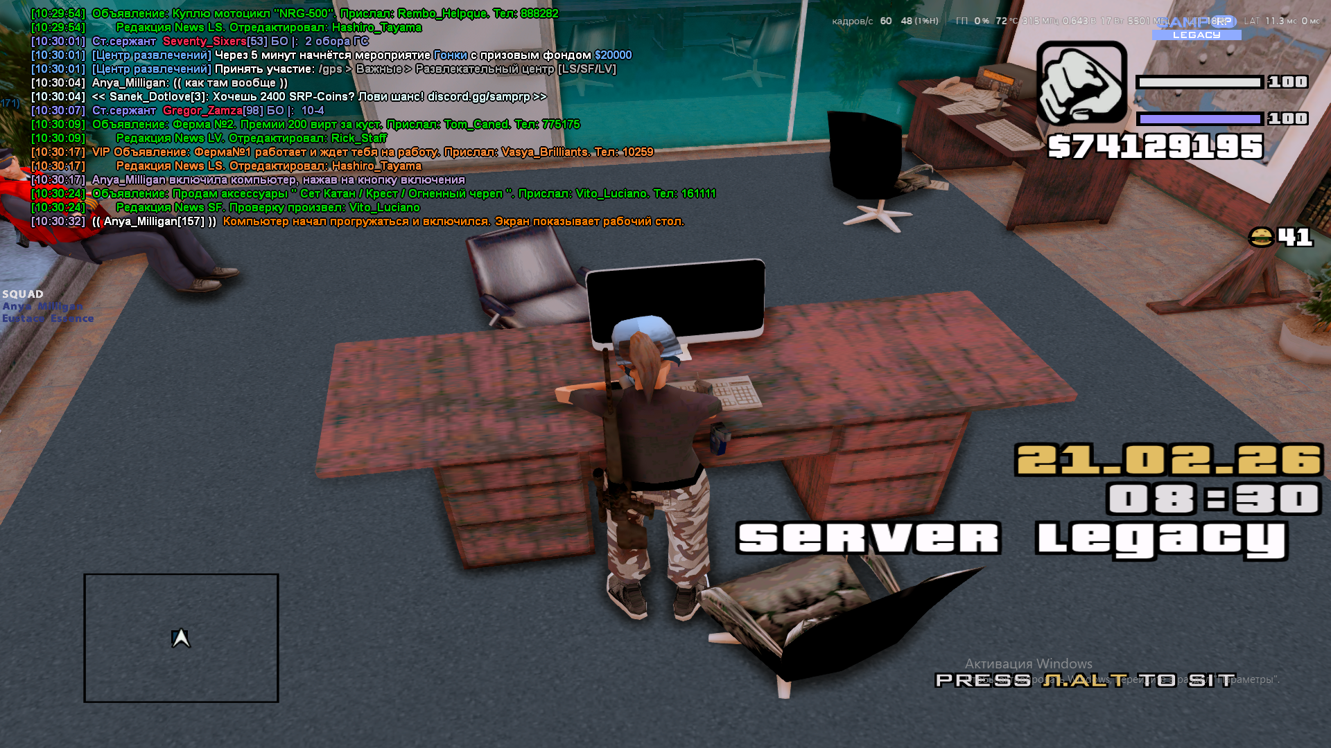 Вход в аккаунт